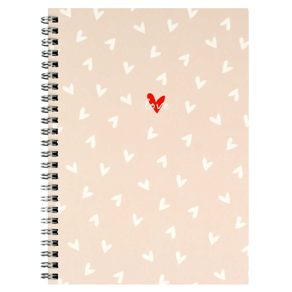 Блокнот, А5, 48 л, арт. 71520 СЕРДЕЧКИ НА БЕЖЕВОМ / Блок - белый офсет 80 г/м?, клетка, гребень по длинной стороне, матовая ламинация/