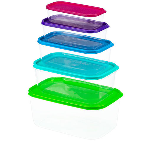 Контейнеры с разноцветными, плотными крышками;