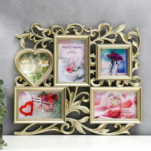Фоторамка - коллаж на 5 фото 10?15 см, 10?10 см Флористика, пластик, мультирамка, золотая, 40?36 см