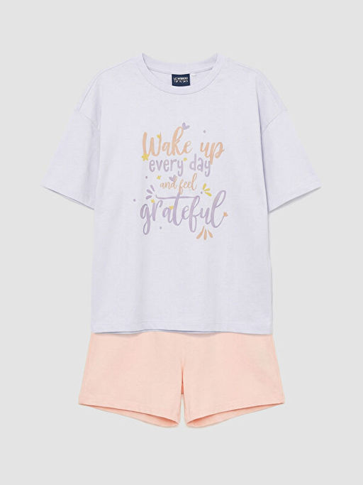• Bisiklet Yaka Bask?l? K?z ?ocuk ?ortlu Pijama Tak?m?