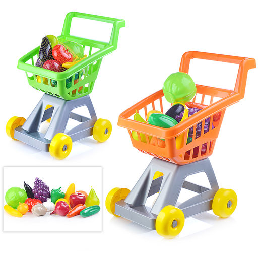 • Яркая тележка с набором фруктов и овощей, это отличная возможность в игровой форме познакомиться с фруктами и овощами, изучая название, форму и их цвет. Игровой набор позволит ребенку совершить фантазийный поход в супермаркет и разыграть множество увлекательных сюжетов. Игра развивает в ребенке трудолюбие, ответственность, сюжетно-ролевое мышление, воображение.