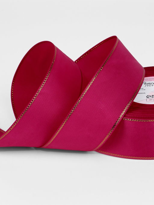 • Лента репсовая, с золотым люрексом, 40 мм, 23±1 м, ярко-розовая №028