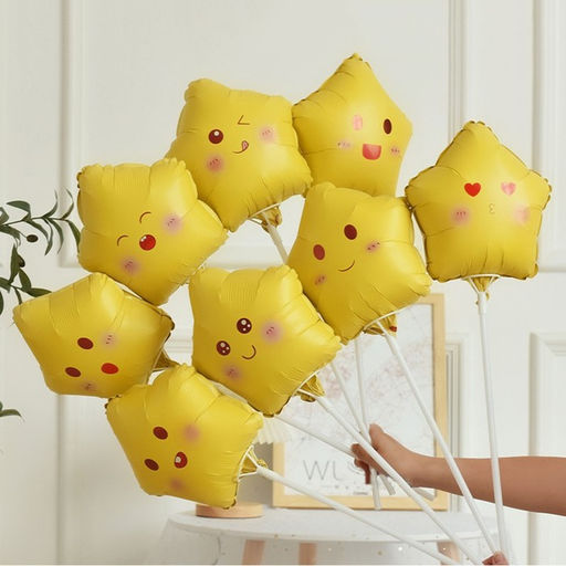 • Цена за 5 шт. Воздушный шар фольгированный 10" «Звезда смайл», для палочки, МИКС