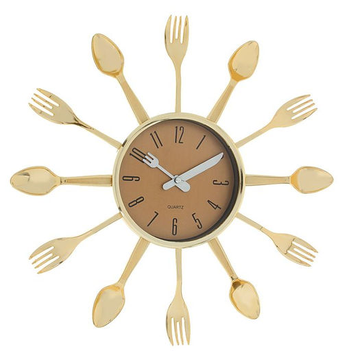 Часы настенные интерьерные, для кухни, «Вилки, ложки», плавный ход, d=12 см, 33×33 см, золотистые
