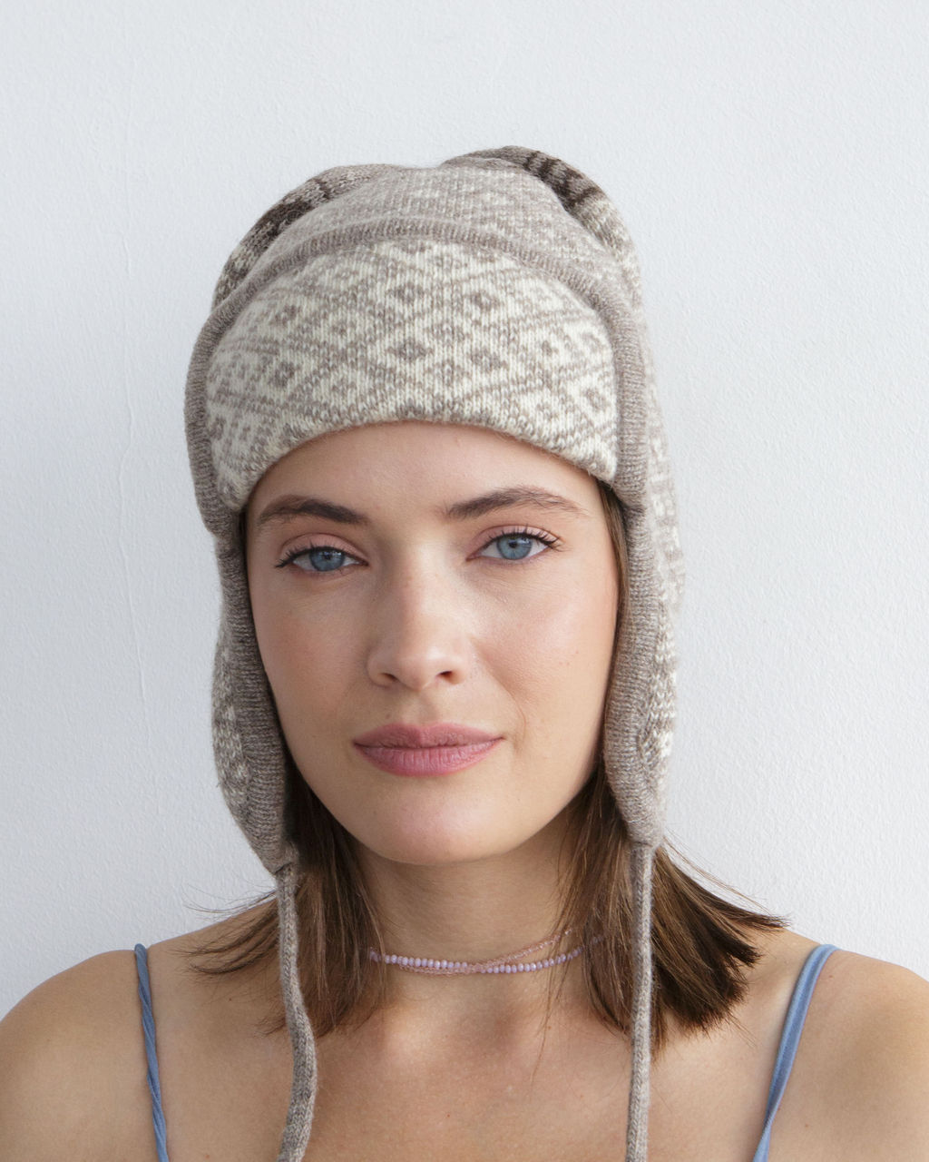 Тёплая и стильная ушанка из натуральной шерсти яка с декоративным жаккардовым рисунком. Модель сочетает в себе традиционный силуэт и современный минимализм, обеспечивая комфорт и надёжную защиту от холода. Мягкая текстура приятно прилегает к коже и подходит для повседневной носки в зимний период.