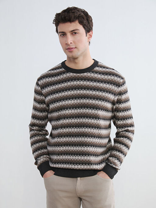 • Bisiklet Yaka Desenli Erkek Triko Kazak