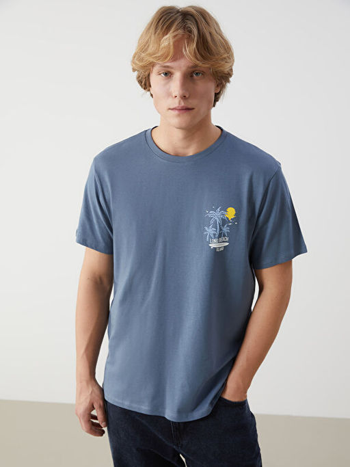 • Bisiklet Yaka K?sa Kollu Bask?l? Penye Erkek Ti??rt
