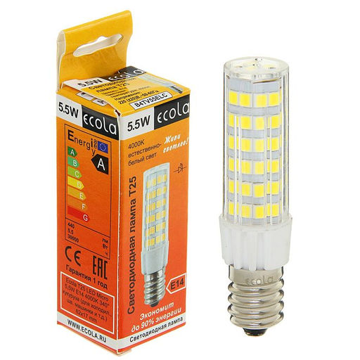 Лампа светодиодная Ecola, T25, E14, 5.5 Вт, 4000 K, 340°, для холодильников и швейных машин