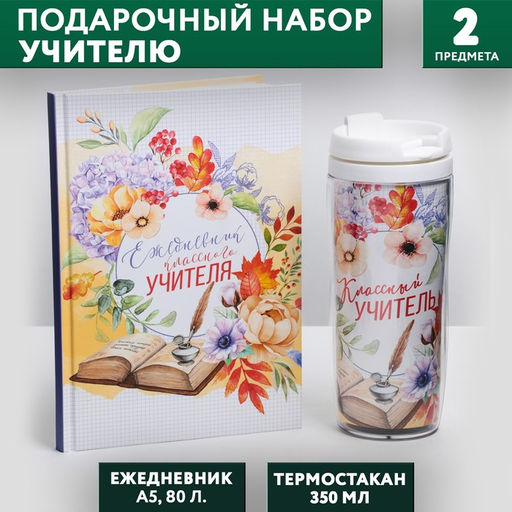 • Подарочный набор, ежедневник А5, 80 л., термостакан 350 мл «Классному учителю»