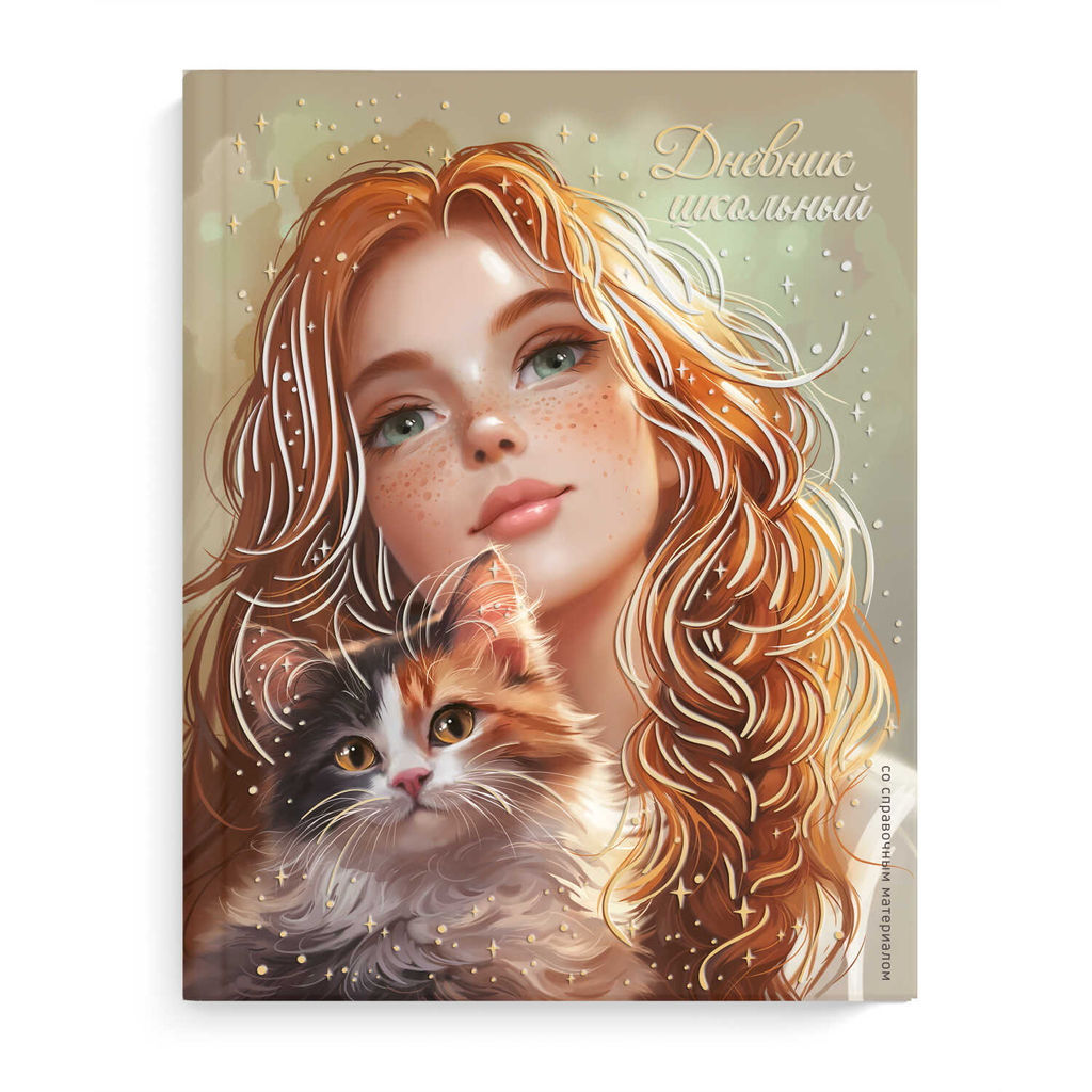 Дневник школьный арт. 71021 РЫЖЕНЬКАЯ С КОШЕЧКОЙ / твёрдый переплёт, А5+, 48 л., тиснение фольгой, глянцевая ламинация, печать в одну краску, универсальная шпаргалка/