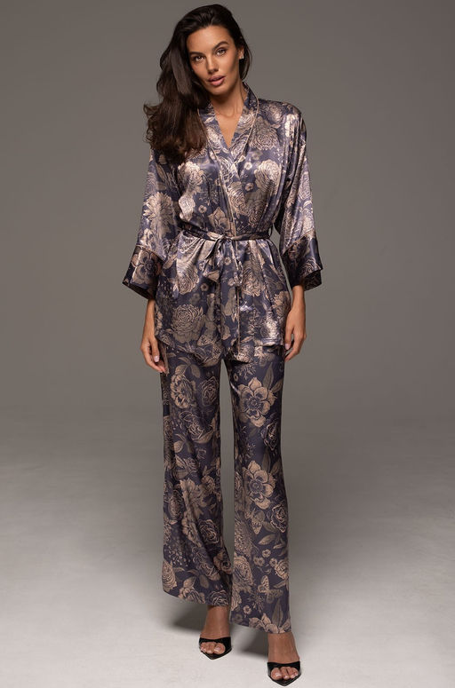 Брючный комплект-тройка Mia-Amore состоит из жакета с длинным рукавом, топа на тонких бретелях и широких брюк. Жакет и брюки выполнены из принтованного смесового шелка, а топ из однотонного. Жакет декорирован отделкой в виде канта. По бокам брюк обработаны карманы. Линию талии жакета можно подчеркнуть за счет пояса, который идет в комплекте.70% натуральный шелк, 25% полиэстер, 5% эластан