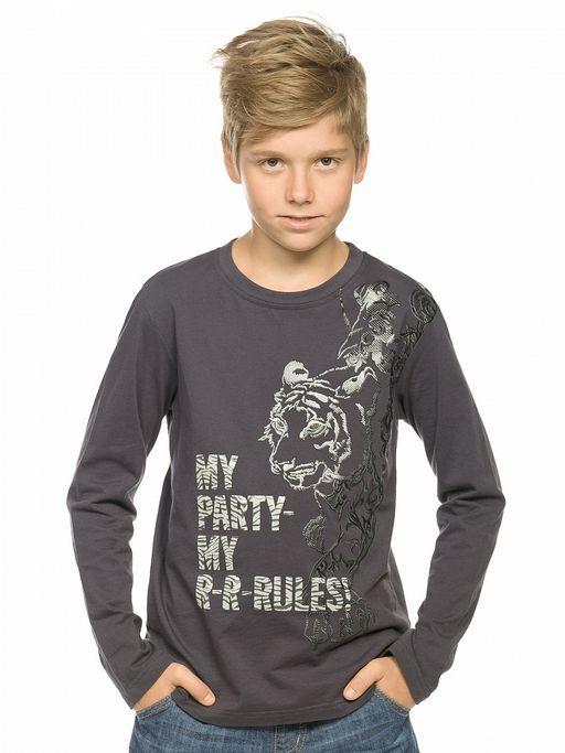 Лонгслив умеренного объема. Стойкий и эластичный металлизированный rubber принт с элементами glossy. Перевод Моя вечеринка правила.