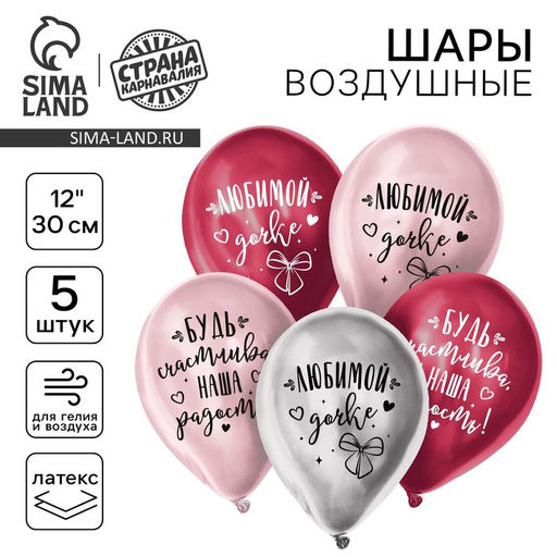 • Цена за 2 шт. Воздушный шар латексный 12" "Любимой дочке", хром, 5 шт.