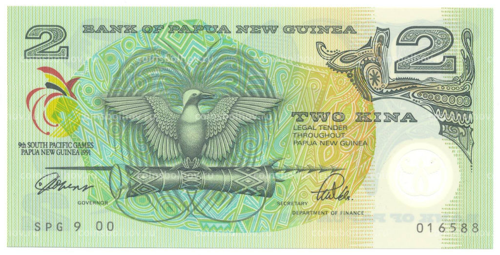 • Банкнота 2 кины 1991 года Папуа Новая Гвинея  9-е Тихоокеанские игры