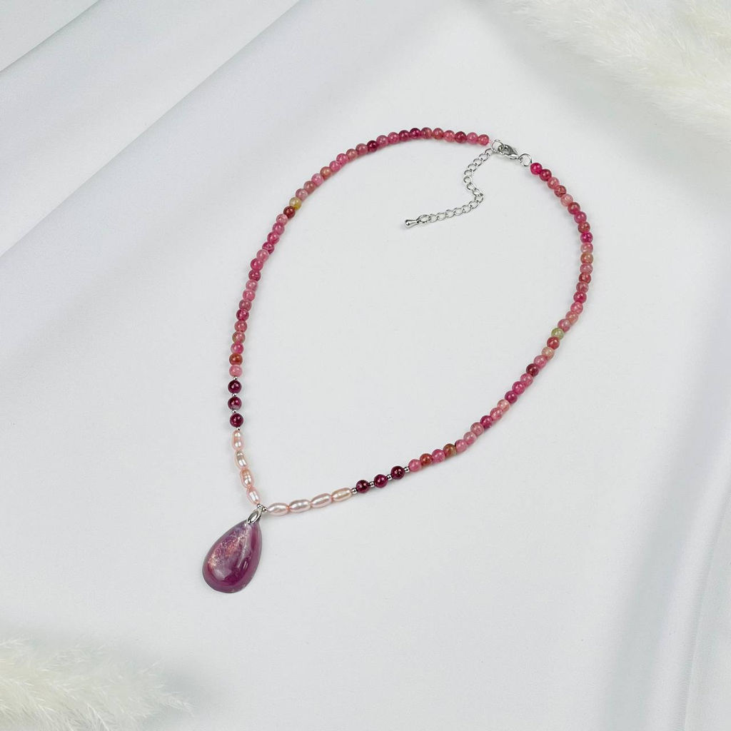 • Бусы-чокер из Турмалина и Жемчуга с кулоном из Лепидолита
