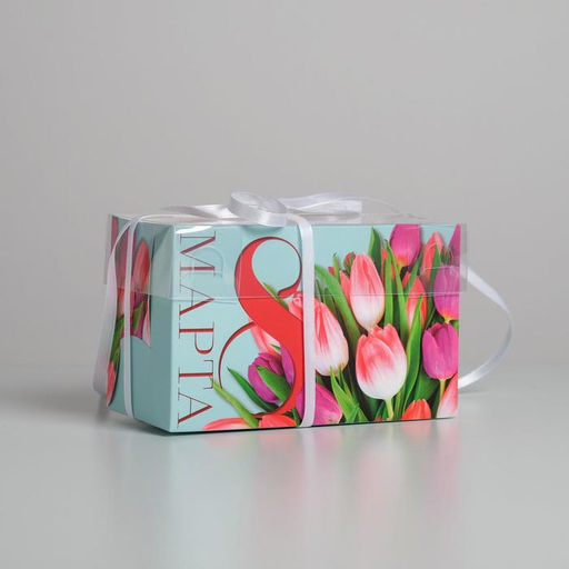 Цена за 5 шт. Коробка для капкейков, кондитерская упаковка, 2 ячейки 8 Марта, 16?8?10 см