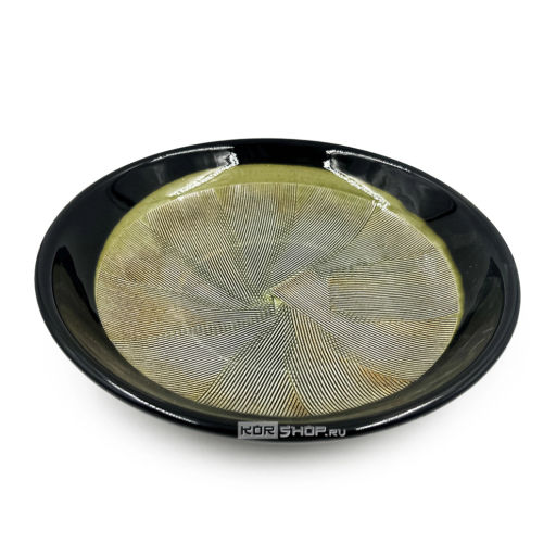 Черная тарелка с узорами изумрудного цвета, произведенная в Японии с применением техники тэммоку кушимэ, представляет собой настоящее произведение искусства, объединяющее в себе уникальную технику изготовления и изысканный дизайн. Тэммоку это специфический метод керамического производства, который использует оксид железа для создания глазури. При обжиге изделия в печи и удалении кислорода получается эффект насыщенного черного цвета, который становится прекрасным фоном для узоров.