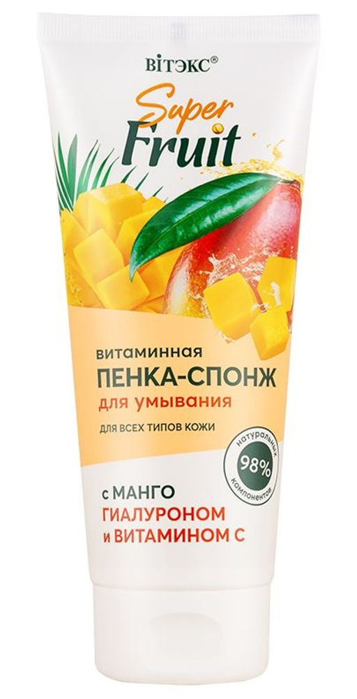 Витэкс Super Fruit Пенка-спонж д/умывания Витаминная с манго, гиалурон.и витамин С (200мл).15