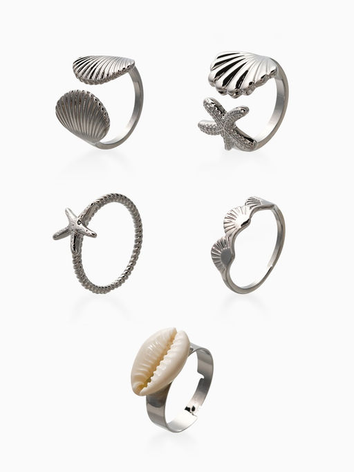 • Набор колец 5 шт "Новый стиль" море, размер МИКС, цвет белый в серебре