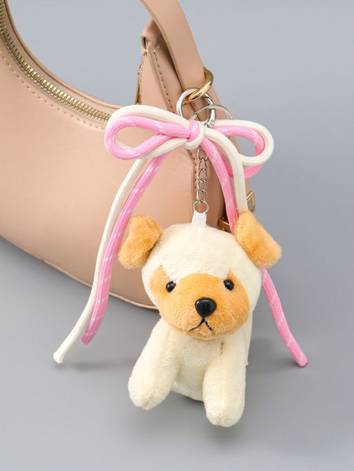 • Брелок текстиль "Милый щенок с бело-розовым бантиком" бежевый 5х9,5х20 см