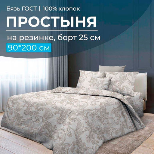 Очень удобная простыня на резинке из бязи ГОСТ плотностью ткани 140 г/м2 на спальное место 90*200 см (ширина и длина матраса). Простыня имеет глубокий борт/спуск 25 см. Резинка проходит по всему периметру (кругу) спального места. Простыни из бязи ГОСТ имеют длительный срок службы, ткань не линяет, не закатывается. у нее абсолютно натуральный состав - хлопок 100 %, она очень комфортна, не деформируется, хорошо впитывает влагу, позволяет коже дышать и способствует вашему полноценному отдыху! Обратите внимание! Простыни сшиты с учетом усадки ткани (с большим припуском по длине и ширине), поэтому необходима предварительная стирка данного швейного изделия. Мы являемся производителями, сами следим за выпускаемой продукцией и гарантируем высокое качество! Наши изделия произведены в Ивановской области, имеют сертификацию качества "ГОСТ 31307-2005", а также зарегистрированы в государственной системе маркировки "Честный знак". -- Характеристики -- Вес: 465 кг Размерность простыни: 1,5-спальная на резинке Размер простыни: 90x200 Ткань: Бязь ГОСТ Состав: 100 % хлопок Плотность: 140 г/м2 Плотность плетения: Высокая Отделка: Без отделки Режим стирки: При 40 градусах Цвет: Бежевый Расцветка: Корсика Вид принта: Вензеля Целевая аудитория: Взрослая