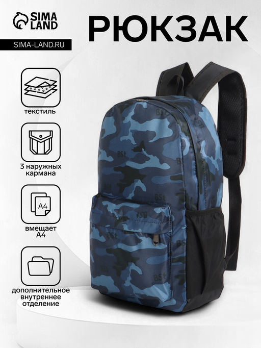 Рюкзак школьный на молнии, с карманами, с принтом, размер 30?13?42 см, тёмно-синий/чёрный