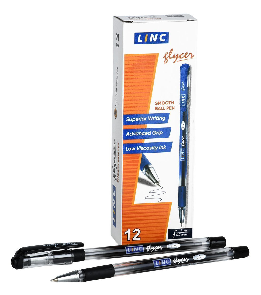 Цена за 2 шт. Ручка шариковая Linc Glycer черная 0,7 мм, прозрачный круглый корпус, грип, игольчатый нак...