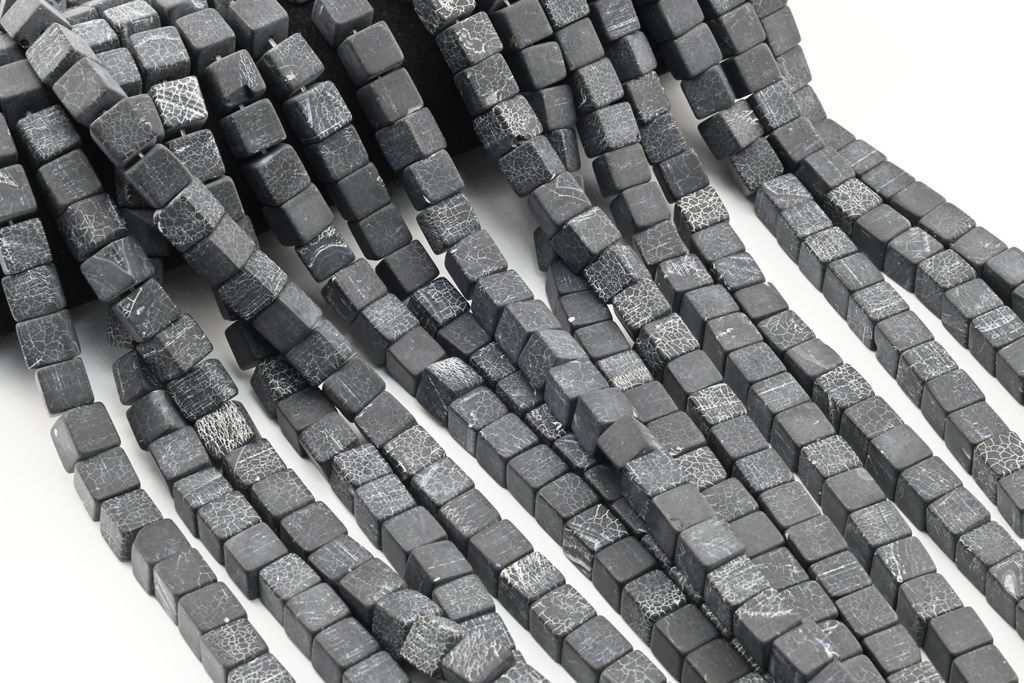 Бусины из агата "Вены Дракона" кубик 10мм цв.черный матовый, 36см, 35 бусин Радуга камня