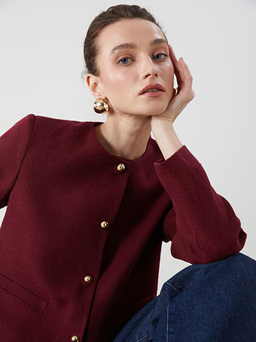 Bisiklet Yaka Dokulu Kad?n T?vit Ceket