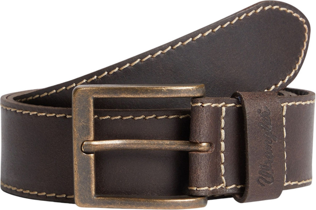 Прошитый ремень коричневого цвета Wrangler STITCHED украшен контрастной строчкой, матовой пряжкой и петлей для ремня с логотипом. Вечная классика, которая прослужит вам долгие годы. Ширина ремня 4 см.