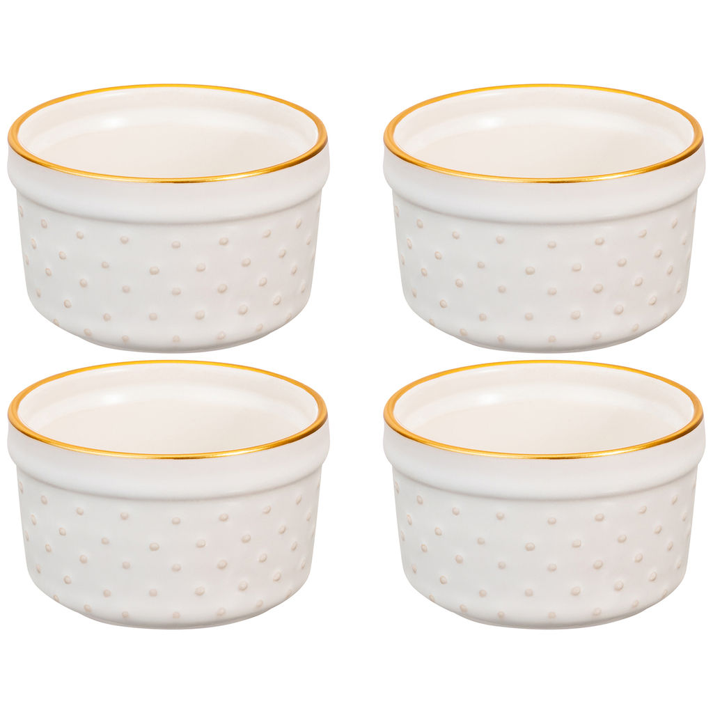 • Набор 4 форм для запекания "Бисер" 200 мл 8,7*8,7*5,6 см, молочно - белый, золотая кайма, керамика