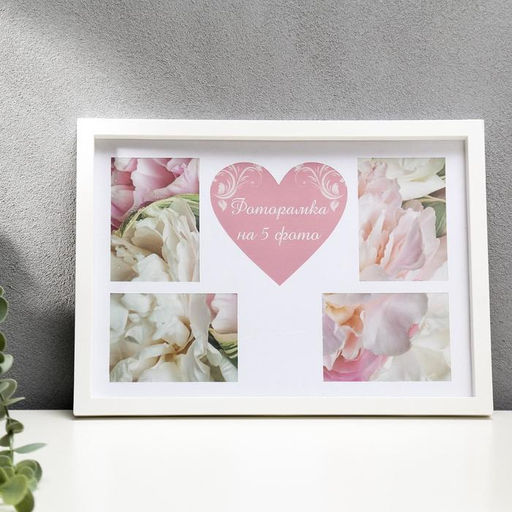 • Фоторамка-коллаж на 5 фото Сердце, пластик, белый, (пластиковый экран)