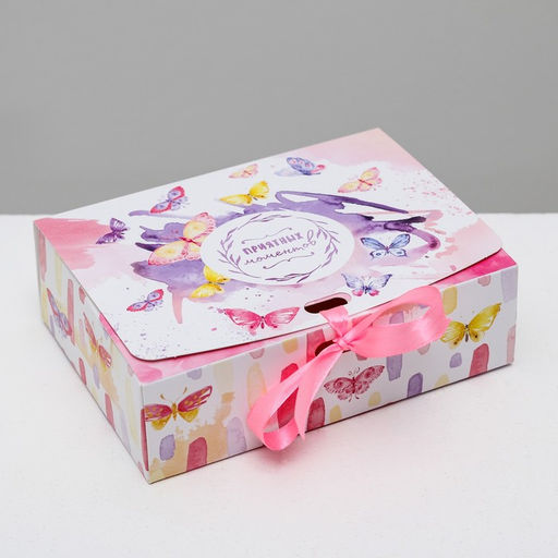 • Цена за 3 шт. Коробка подарочная складная, упаковка, Приятных моментов, 16.5?12?5 см, БЕЗ ЛЕНТЫ