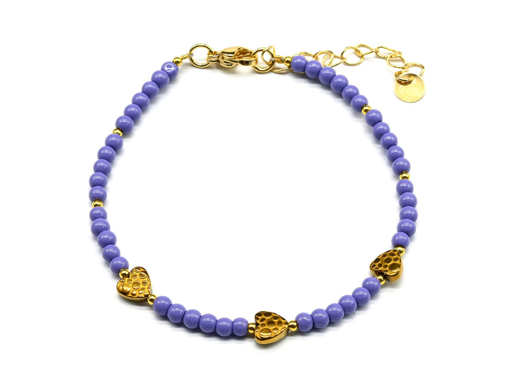 • Браслет из бисера "Сердечки" шарик 3мм цв.лавандовый, 18см