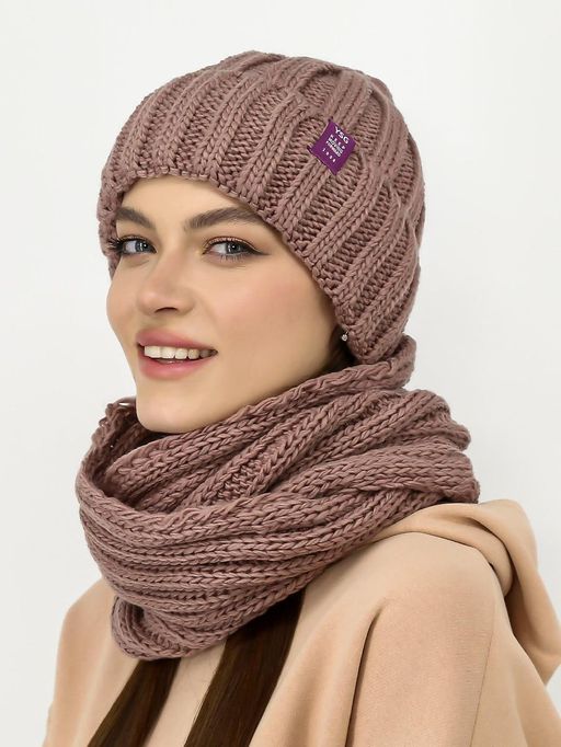 Комплект с шерстью на флисе крупной вязки со снудом в два оборота (хомут).