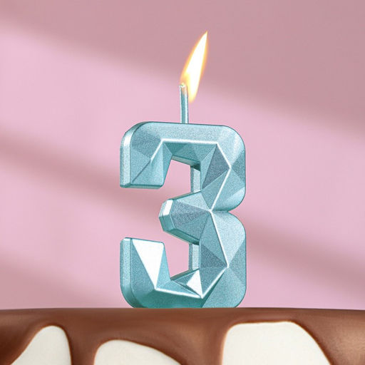 Свеча в торт на шпажке «Алмаз», цифра 3, голубая, 5 см