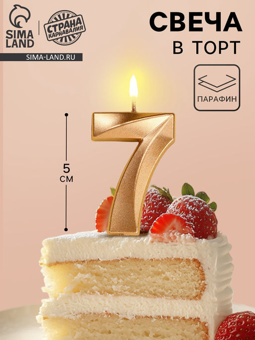 Набор: Нет. Для кого: Унисекс. Ширина, см: 3.5. В наборе, шт.: 1. Высота свечи без шпажки, см: 5. Высота свечи, см: 12. Тематика праздника: Универсальная тематика. Форма свечи: Цифры. Цифра: 7. Бесплатная доставка: Да.