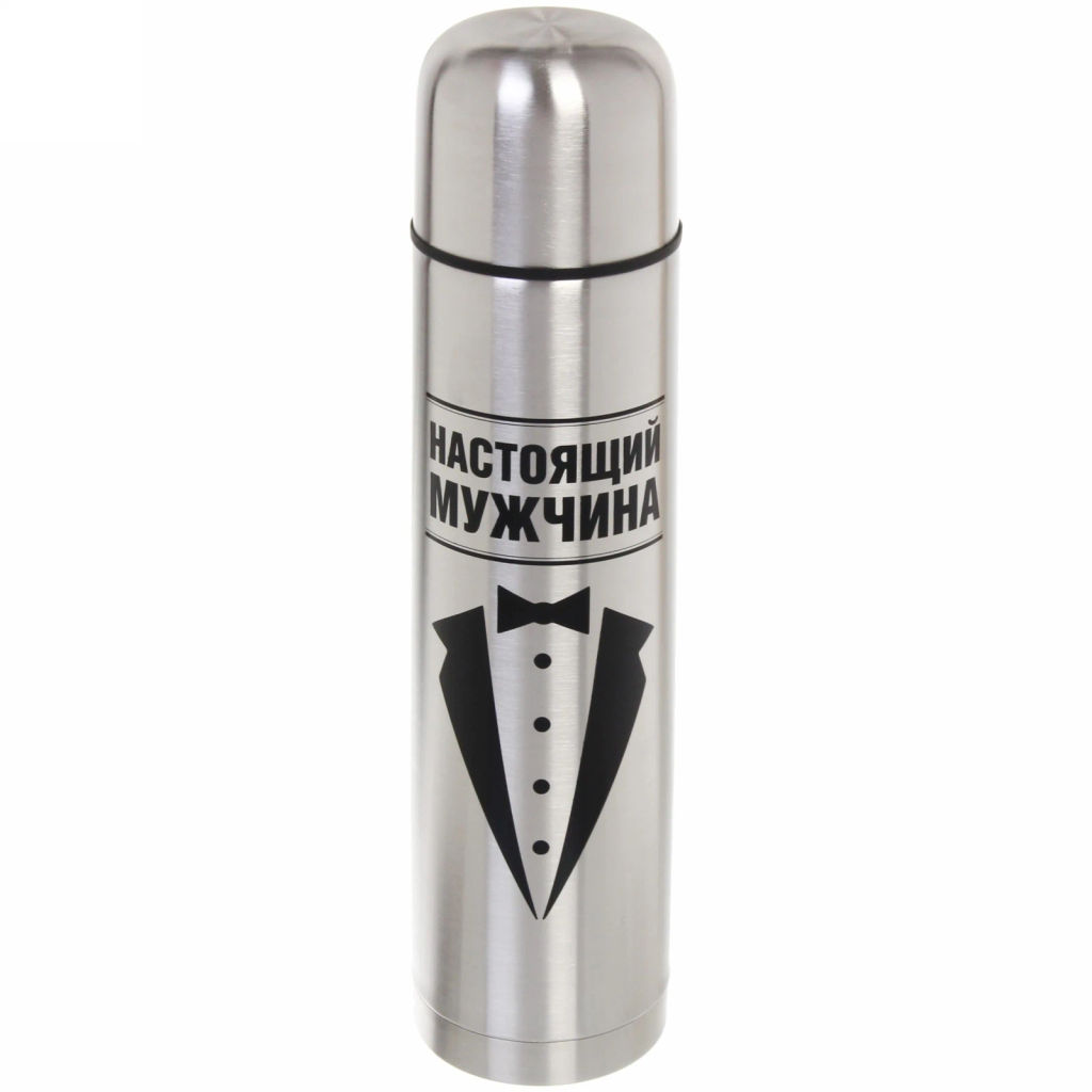 Термос с металлической колбой 1000 мл"Настоящий мужчина" Серп и молот­