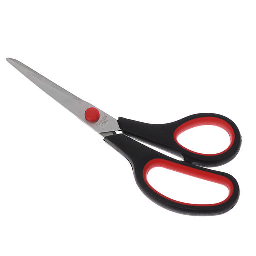 Универсальные ножницы. Отлично подойдут для различных бытовых нужд: для работы с бумагой, картоном, полиэтиленом. Ножницы удобно лежат в руке, а их острые лезвия обеспечивают идеально ровный срез. Пластиковые ручки обеспечивают удобное положение инструмента в руке.