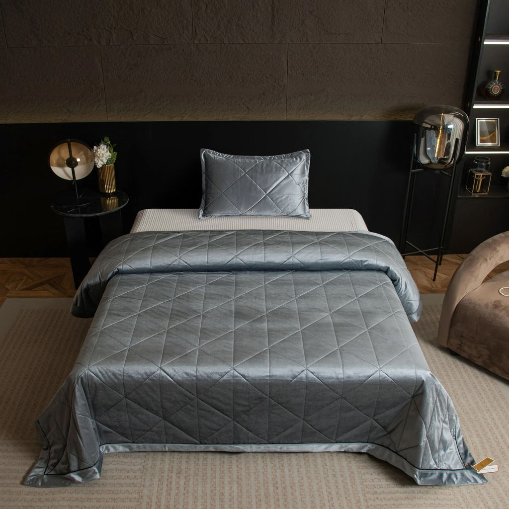 Велюровое покрывало - прекрасное дополнение интерьера спальни или гостиной, которое внесёт в пространство особую энергетику домашнего уюта. Отличительной чертой покрывала является невероятно мягкая бархатистая поверхность, которая подарит Вам незабываемые тактильные ощущения. Велюровые покрывала характеризуются прочностью и устойчивостью к механическому воздействию, воздухопроницаемостью. Изящное покрывало подчеркнёт строгие и лаконичные линии предмета мебели, смягчив их и придав неповторимое очарование не только постели, но и окружающему пространству. Геометрический узор на покрывале выполнен с использованием термостежки, что придаёт изделию особую изысканность и подчёркивает элегантность интерьера. Перед использованием рекомендуется отпарить покрывало, чтобы устранить складки, которые могли образоваться во время транспортировки и хранения товара. Материал: Бархат-велюр Состав материала: 100% пэ Наполнитель: Высокосиликонизированное микроволокно Состав наполнителя: 100% пэ Упаковка: Сумка ПВХ на молнии с ручками Изображения, элементы, расположение рисунка и цвет представленного на упаковке товара могут незначительно отличаться от оригинала. Размер: 1.5 спальное Покрывало: 160*220 см Наволочка: 50*70 см 1 шт. (с запАхом) Евро Макси Покрывало: 240*260 см Наволочка: 50*70 см 2 шт. (с запАхом) -- Характеристики -- Габариты: 58 x 45 x 12 см Вес: 2,5 кг Транспортировочная упаковка: 47.000/37.000/10.000 Упаковка: ПВХ сумка Цвет: Средне-темный серый Ссылка на видео: https-//www.youtube.com/embed/ToDpt3guDlQ Состав: Ткань- 100% пэ | Наполнитель- 100% высокосиликонизированное полиэфирное волокно Яндекс Видео: https-//yadi.sk/i/R1Xmajs0ioIv0g Яндекс Фото: https-//yadi.sk/d/e-OY19nfuJGKCA Материал: Бархат-велюр Состав материала: 100% пэ Наполнитель: Высокосиликонизированное микроволокно Состав наполнителя: 100% пэ Покрывало: 160*220 см Наволочка: 50*70 см 1 шт. (с запАхом)