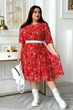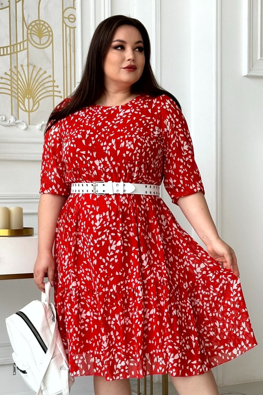 Элегантное платье миди из мягкого полупрозрачного шифона на эластичной подкладке. Модель имеет круглый вырез и  рукава длиной 3/4, присобранные по низу тонкой резинкой. Отрезная по линии груди многоярусная юбка искусно обыгрывает фигуру и подчеркивает женственность образа. Центральный шов по спинке способствует оптимальной посадке по фигуре. Актуальный принт добавляет динамичности и освежает образ. Для завершения стильного образа используйте яркие аксессуары и туфли на высоких каблуках.