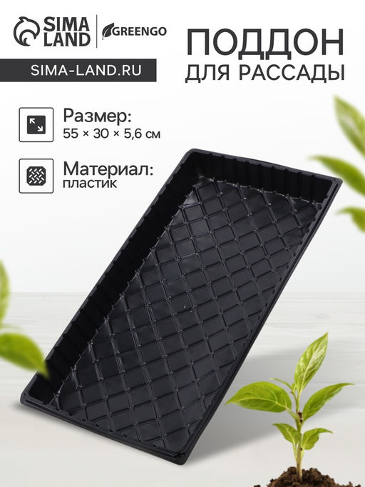 Поддон для рассады 55×30 см — это вместительная ёмкость для организации полива и защиты поверхностей. Чёрный пластиковый лоток используют в теплицах и на подоконниках для группировки посадочных горшков. Вместительный размер 55×30 см: площадь подходит для размещения нескольких горшков или кассет для рассады. Пропорции оптимальны для стандартных стеллажей и подоконников. Чёрный пластик: материал создаёт благоприятные условия для корневой системы, защищая её от избыточного света. Высота борта 5,6 см: поддон собирает излишки влаги и грунта, сохраняя чистоту рабочих поверхностей. Прочный материал: пластик устойчив к воздействию воды, удобрений и перепадов температур. Лоток сохраняет форму при длительном использовании и не трескается. Эффективность полива: поддон служит резервуаром для воды, которую растения впитывают через дренажные отверстия. Такой способ увлажнения стимулирует развитие корневой системы и предотвращает пересыхание грунта. Рассада получает влагу равномерно, а вы сокращаете частоту поливов. Поддон — практичное решение для организации ухода за растениями в теплице, на балконе или подоконнике.