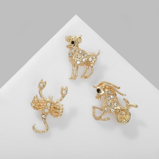 Цена за 12 шт. Брошь «Знаки зодиака», ассорти, гороскоп, белая в золоте