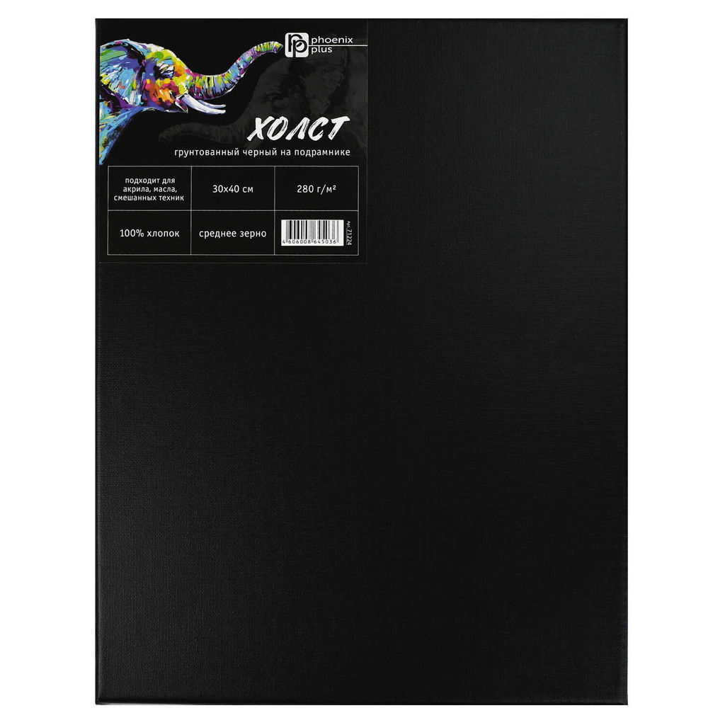 • Холст художественный на подрамнике из сосны, чёрный, Феникс+ арт. 71224/ 40 СЛОН (30х40 см, хлопок 1