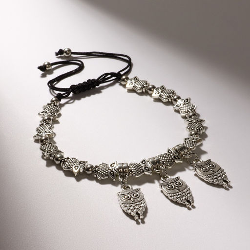 Цена за 2 шт. Браслет металл «Марджери» затягивающийся, сова, цвет серебро, 6см
