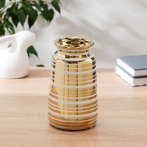 • Ваза для цветов «Альба», d=6.5 см, 11×20 см, керамика, бело-золотая