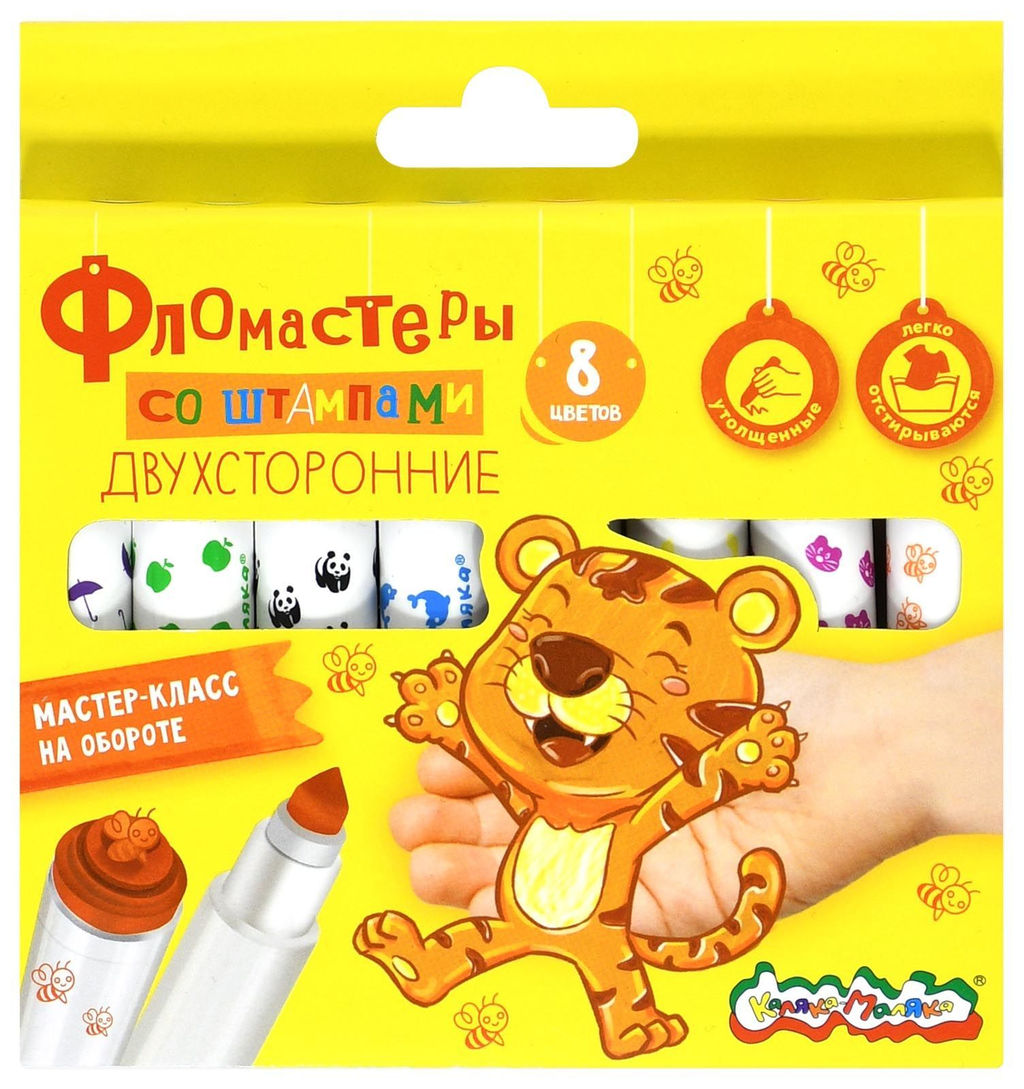 • Фломастеры Каляка-Маляка со штампиками 8 цв. круглый корпус, легкосмываемые, двухсторонние...