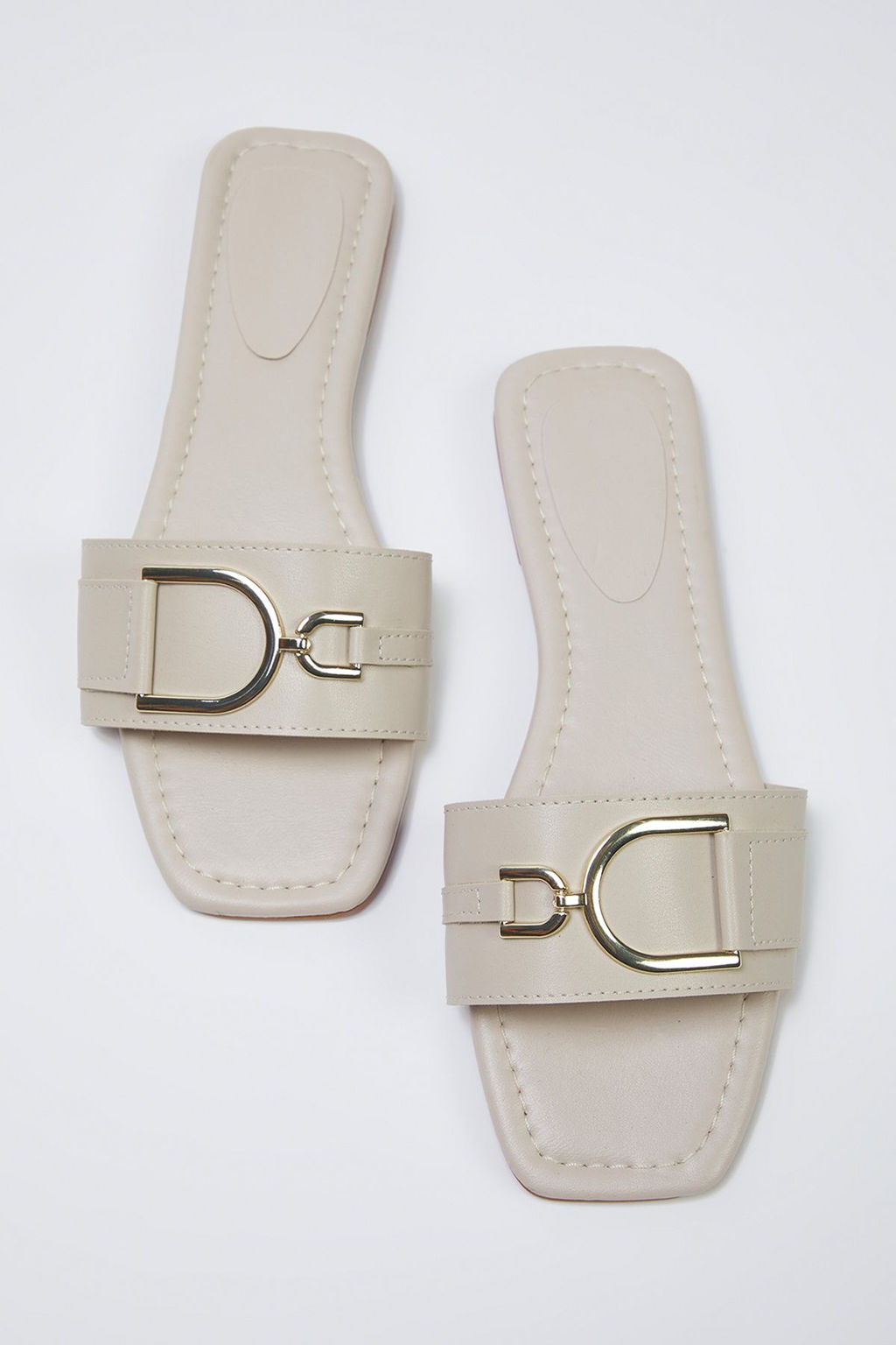 Bej Metal Aksesuar Detayl? Kad?n Terlik TAKSS25TE00015