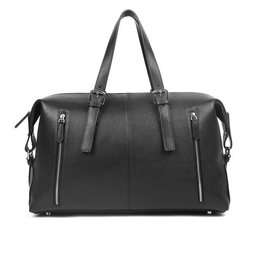 Вместительная  сумка MIRONPAN в  черном цвете  выполнена из натуральной зернистой кожи  отличается особой функциональностью. Она идеально подойдет для недолгих поездок , а также будет полезна при походе в спортзал. Основное отделение закрывается на молнию. Внутри есть один боковой карман на молнии, а также секция с