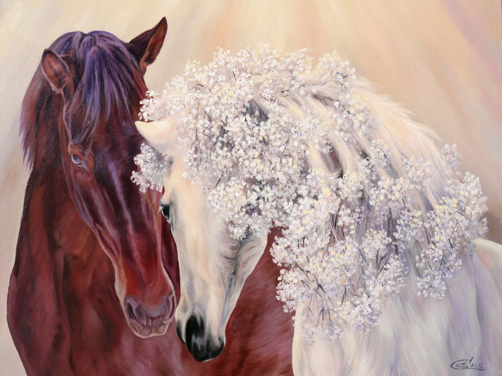 • Вышивка крестиком 40х50см, Две лошади